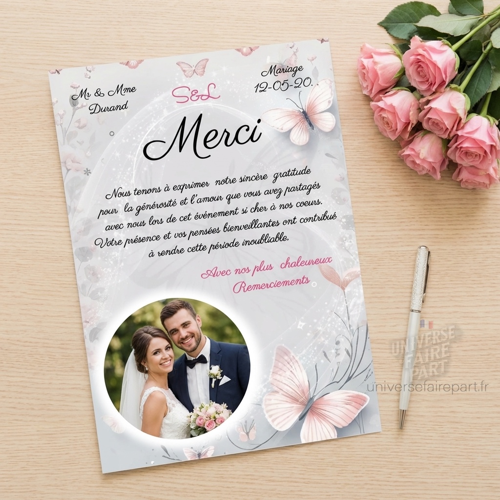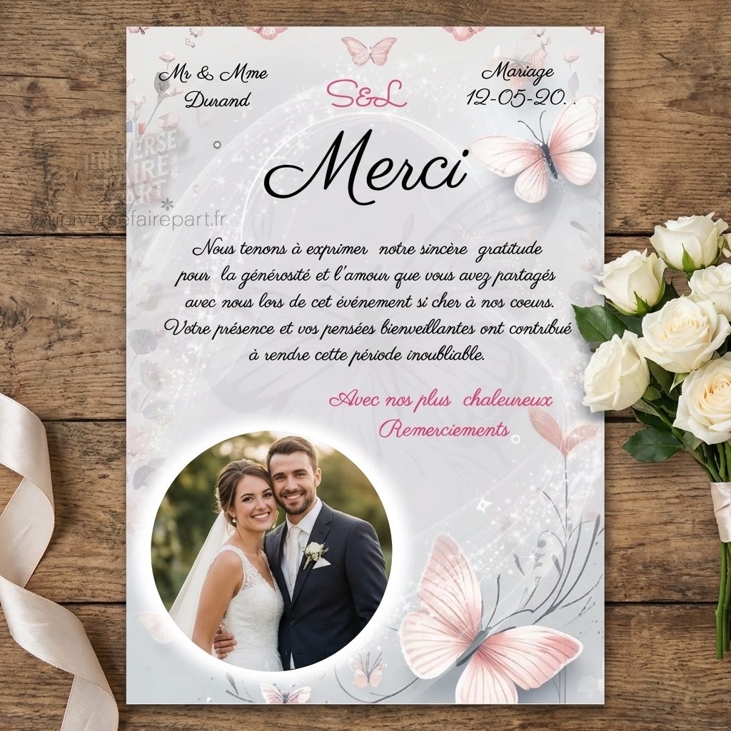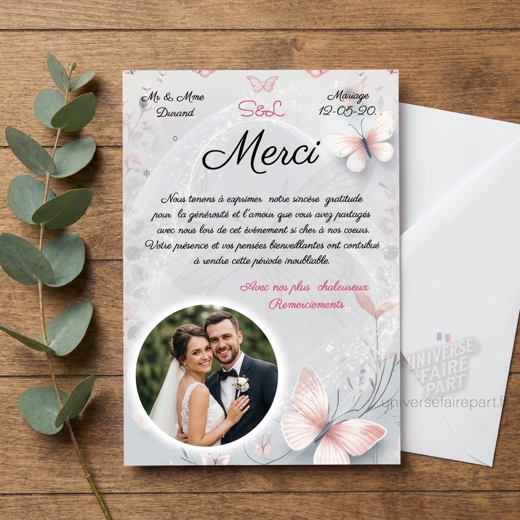 N°39.5 – faire-part remerciements mariage papillons Éclat Enchantés