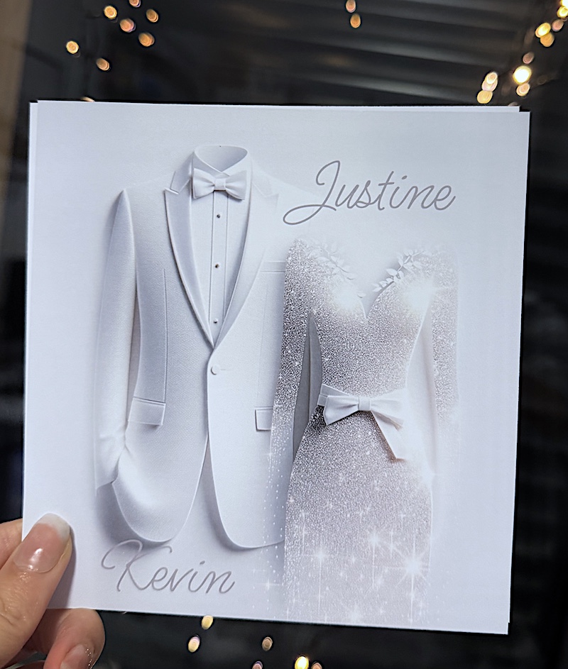 Ce carton repas, faisant partie de la suite « Élégance et Raffinement », invite vos convives à se joindre à vous pour célébrer l’union de deux êtres dans la joie et la gourmandise. Chaque détail du design, raffiné et soigneusement pensé, préfigure la qualité et l’exclusivité du banquet à venir. La promesse d’un festin mémorable se lit à travers la texture noble et l’impression délicate, dignes de votre amour.