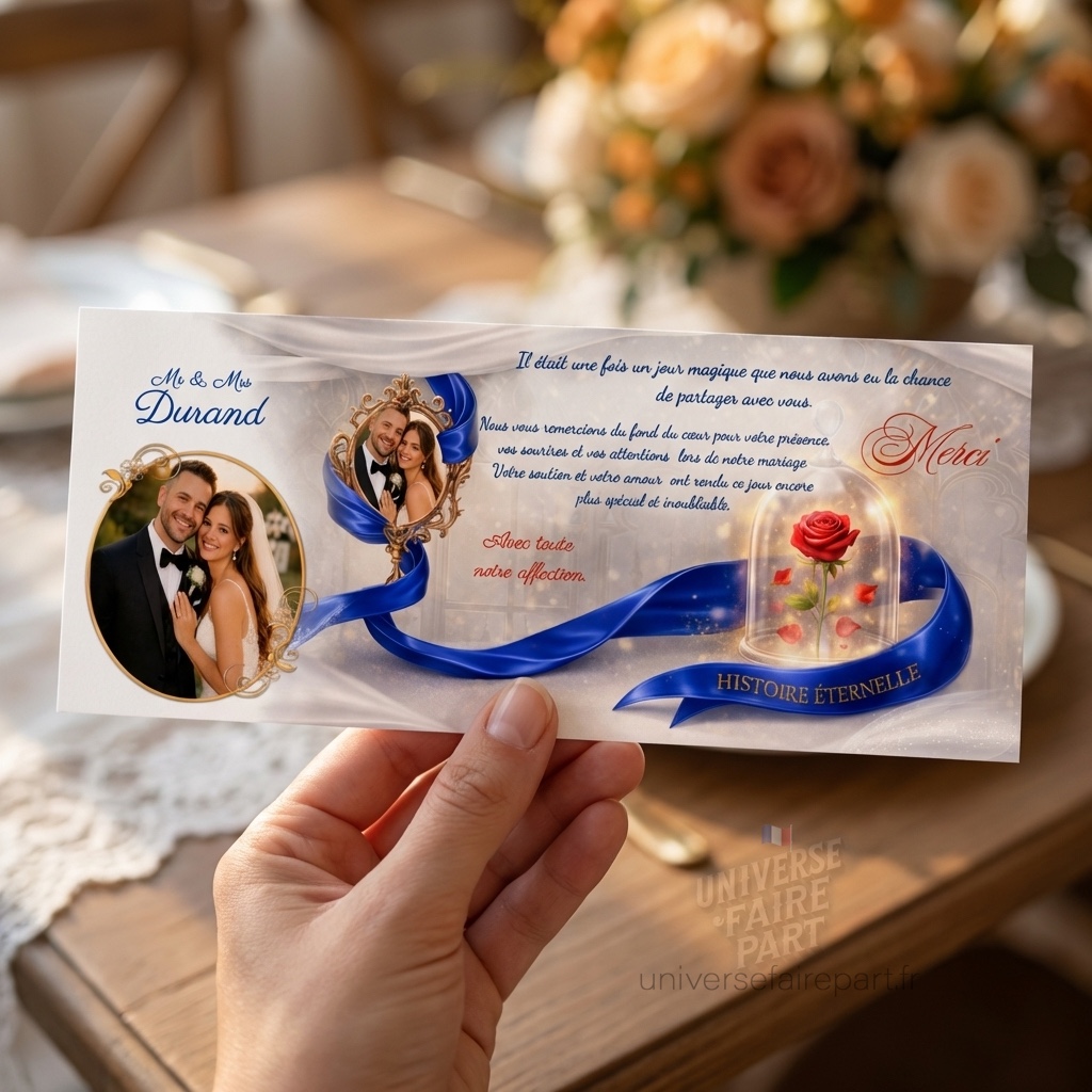 N°553.7 – Carte remerciement Histoire éternelle belle et la bête dessin