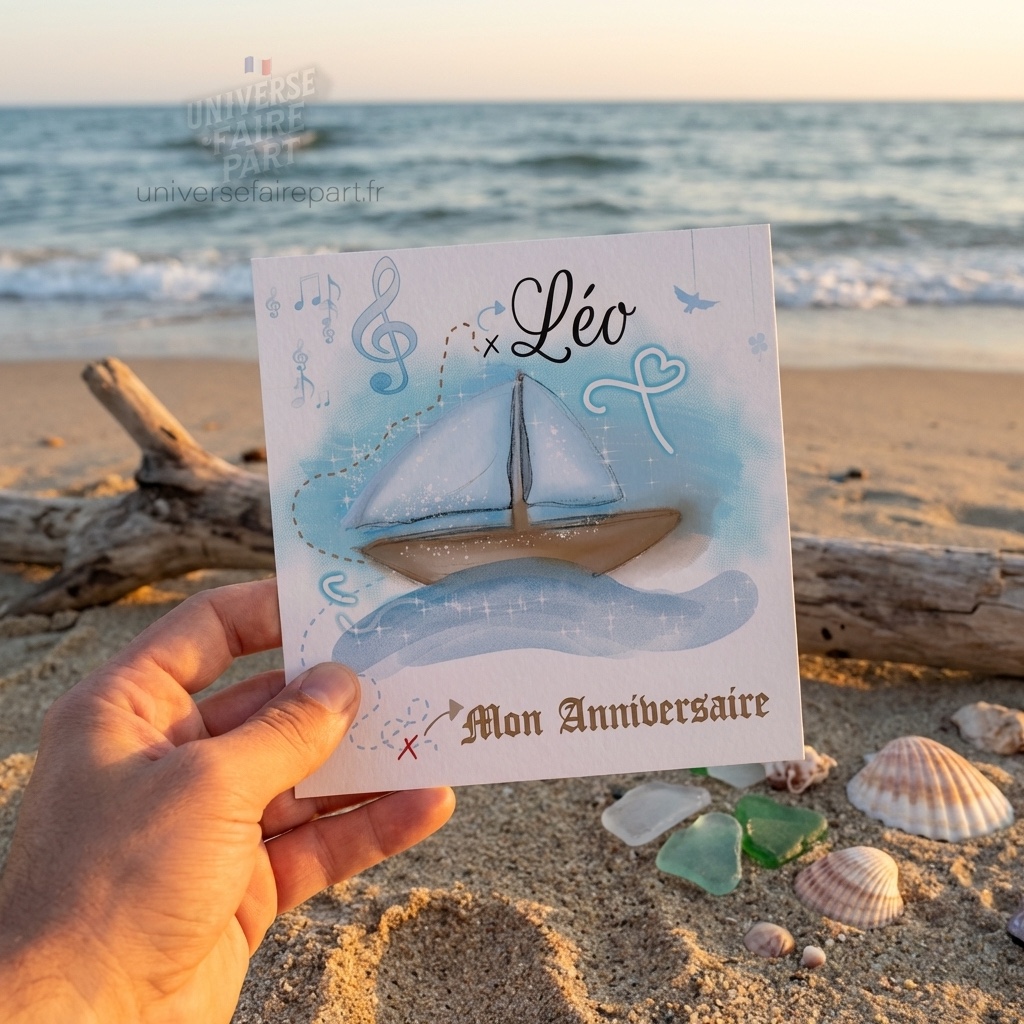 Nous sommes ravis de vous présenter notre nouveau faire-part, une invitation pleine de charme et d’aventure pour célébrer un événement spécial. Ce faire-part est parfait pour ajouter une touche de mystère et de découverte à votre célébration, évoquant le voyage et l’exploration en mer.