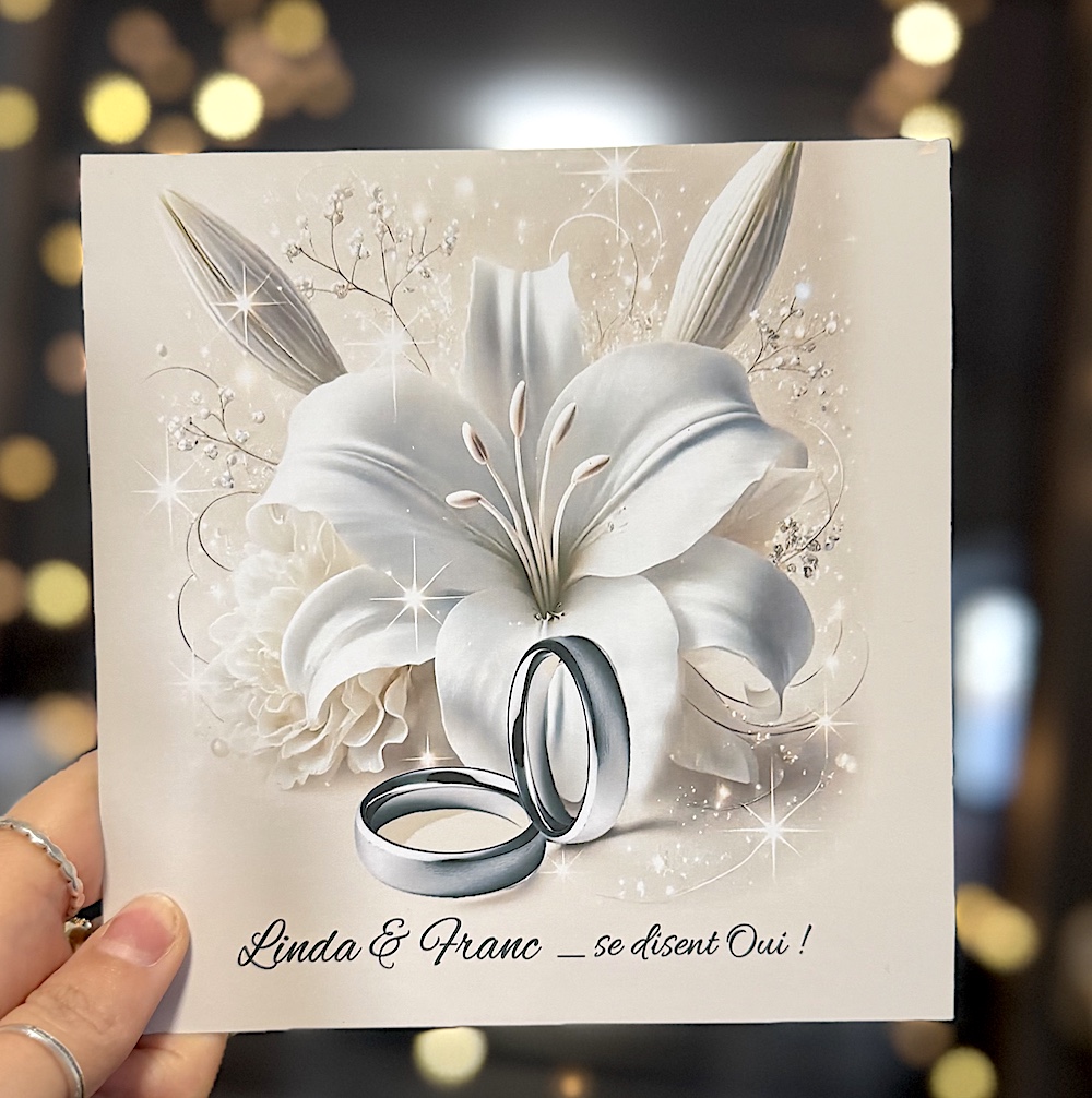 Mots-clés : faire-part mariage, faire-part argenté, faire-part élégant, faire-part lys, faire-part personnalisé, faire-part raffiné, mariage religieux, faire-part en France.