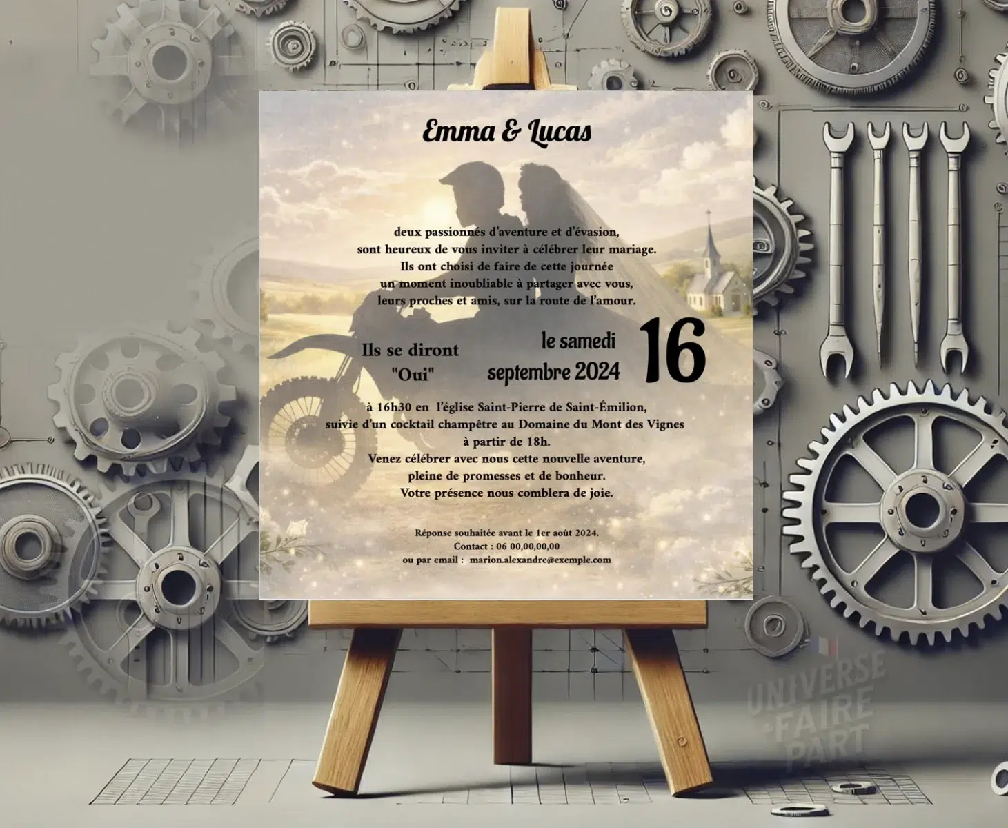 N°577 – Faire-part de mariage original moto Yamaha passionnés d’aventure !