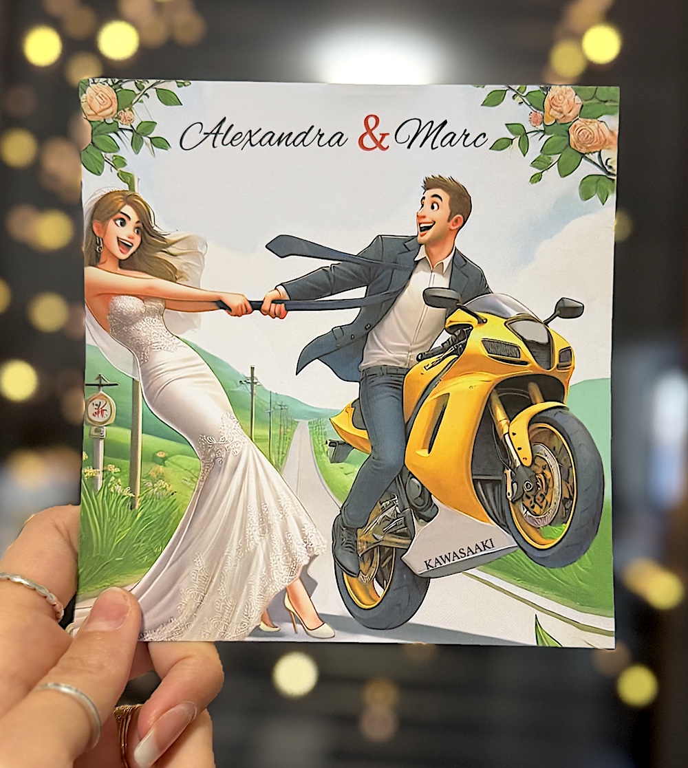 Faire-part de mariage original avec moto Yamaha – Pour les passionnés d’aventure !