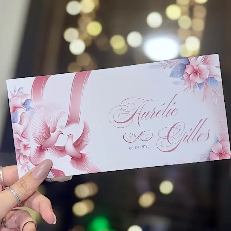 - Personnalisation : Ajoutez vos prénoms, la date de votre mariage et un message personnel pour une invitation unique.