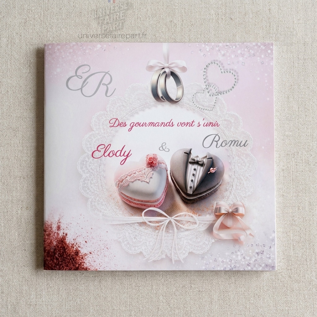 Commandez dès maintenant notre faire-part gourmandise Macarons d’Amour – Livret et émerveillez vos proches avec cette invitation gourmande et irrésistible. Laissez les macarons d’amour évoquer la joie, la délicatesse et la douceur de votre événement, et partagez ces moments spéciaux avec vos proches.