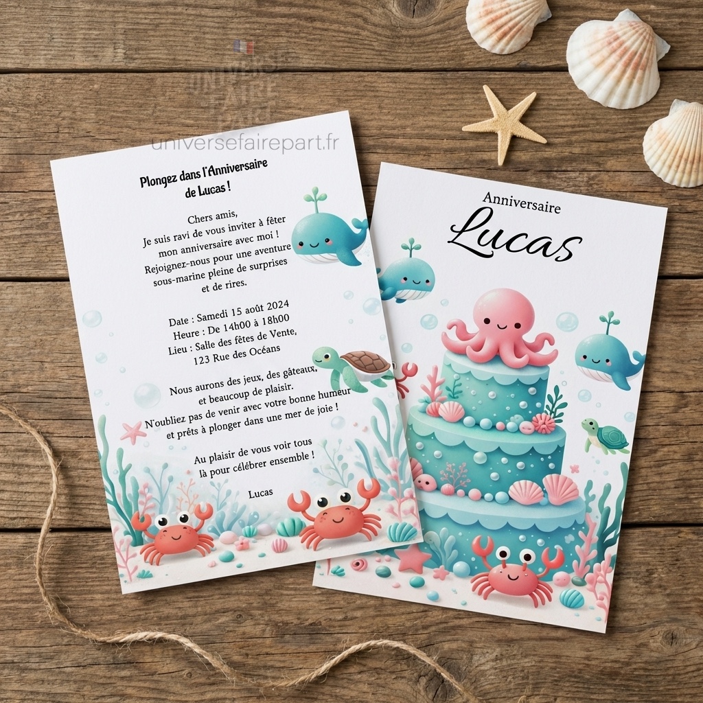 N°108 – Faire-part aquatique amis de la mer pour un Anniversaire