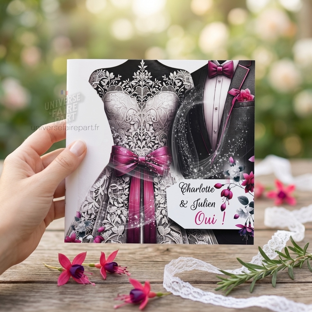 Le papier de qualité supérieure offre une texture agréable au toucher et un éclat visuel qui attire le regard. Chaque faire-part est une promesse de qualité, conçu pour annoncer votre jour J avec panache et distinction.