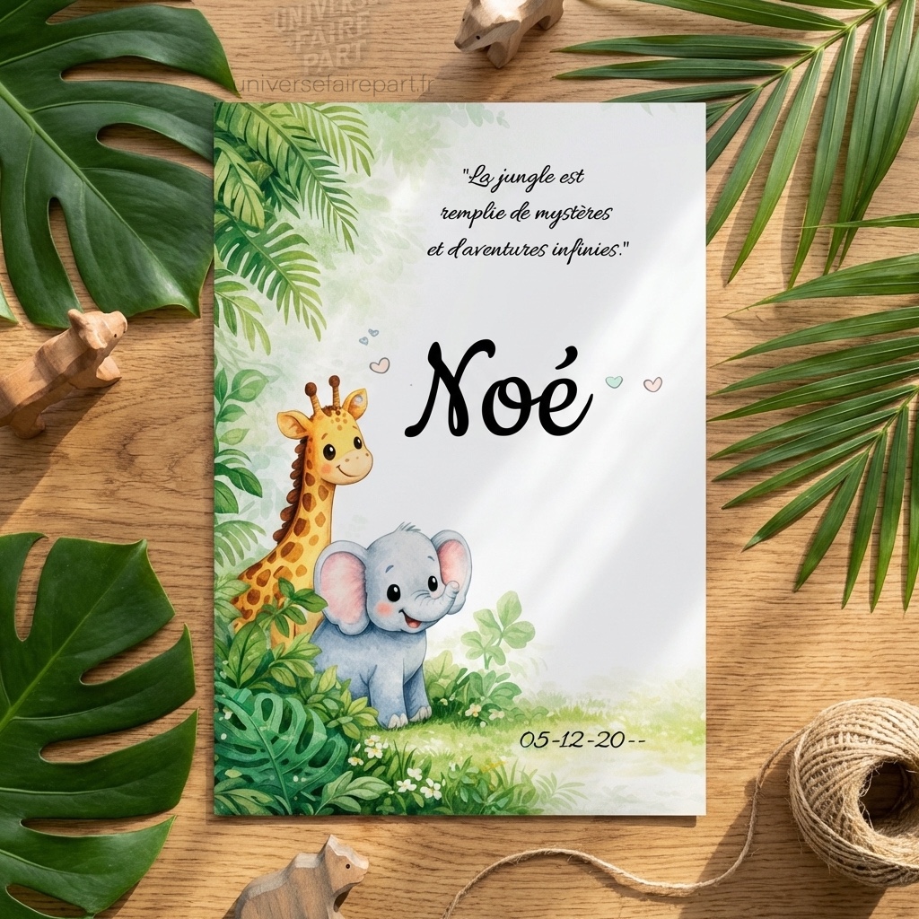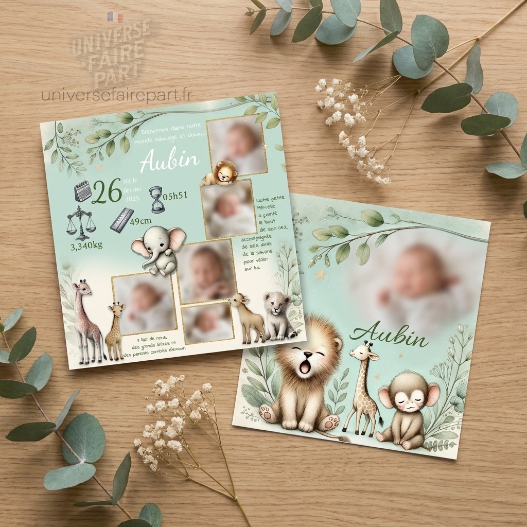 N°196 – Faire-part tendresse animaux de la jungle Aubin