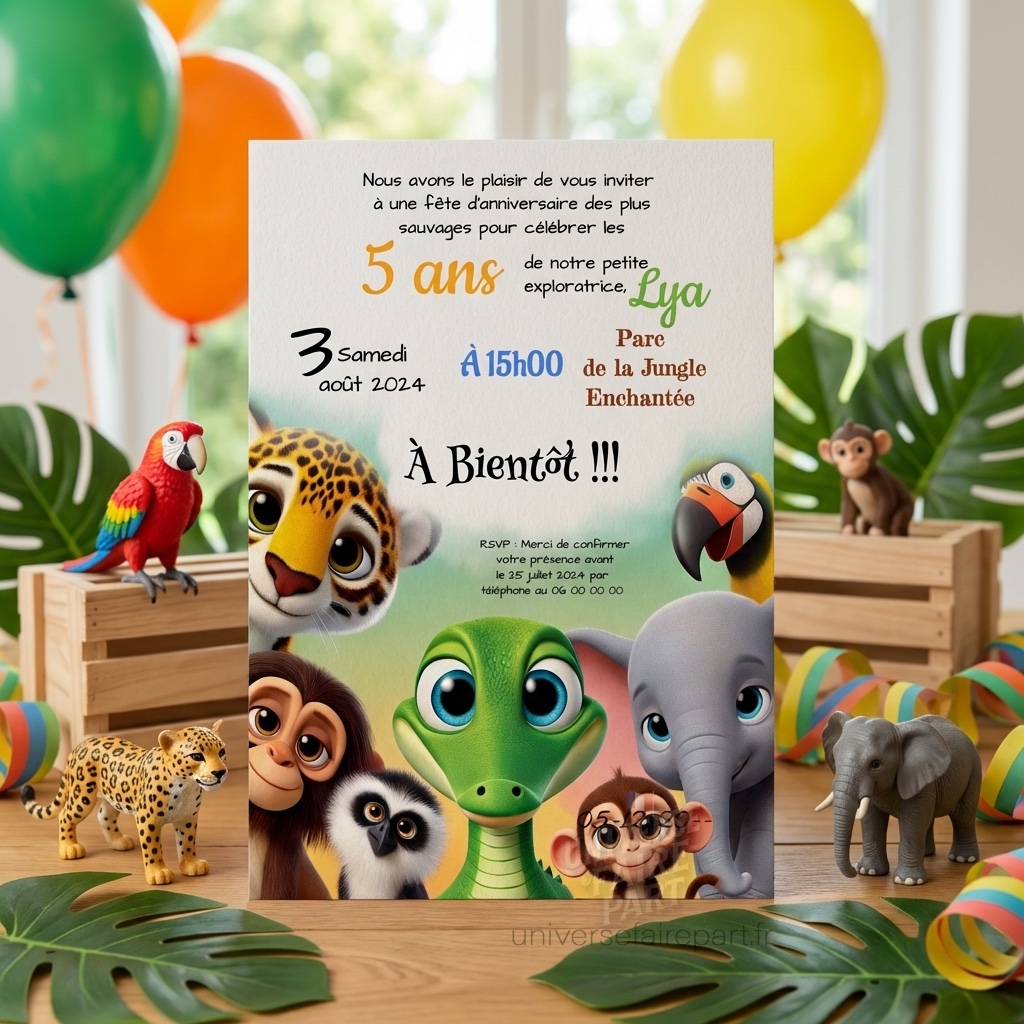 N°567- Faire-part Explorons la Jungle pour mon Baptême PREMIUM