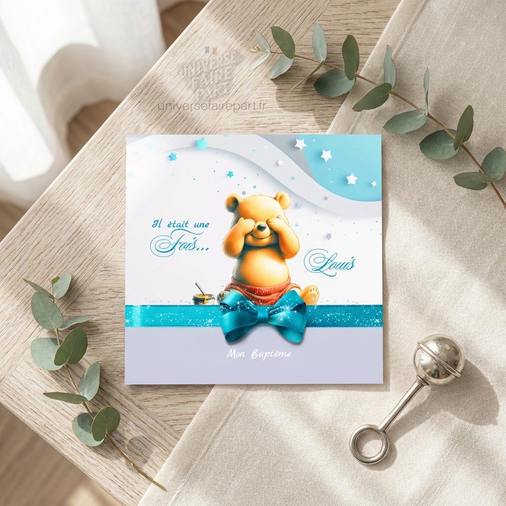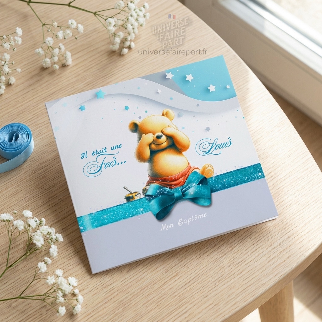 N°539 – Faire-part Winnie L’ours malin en Bleu