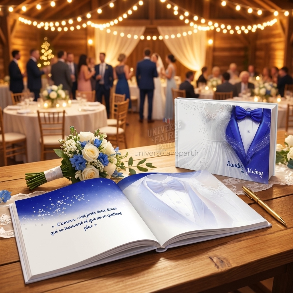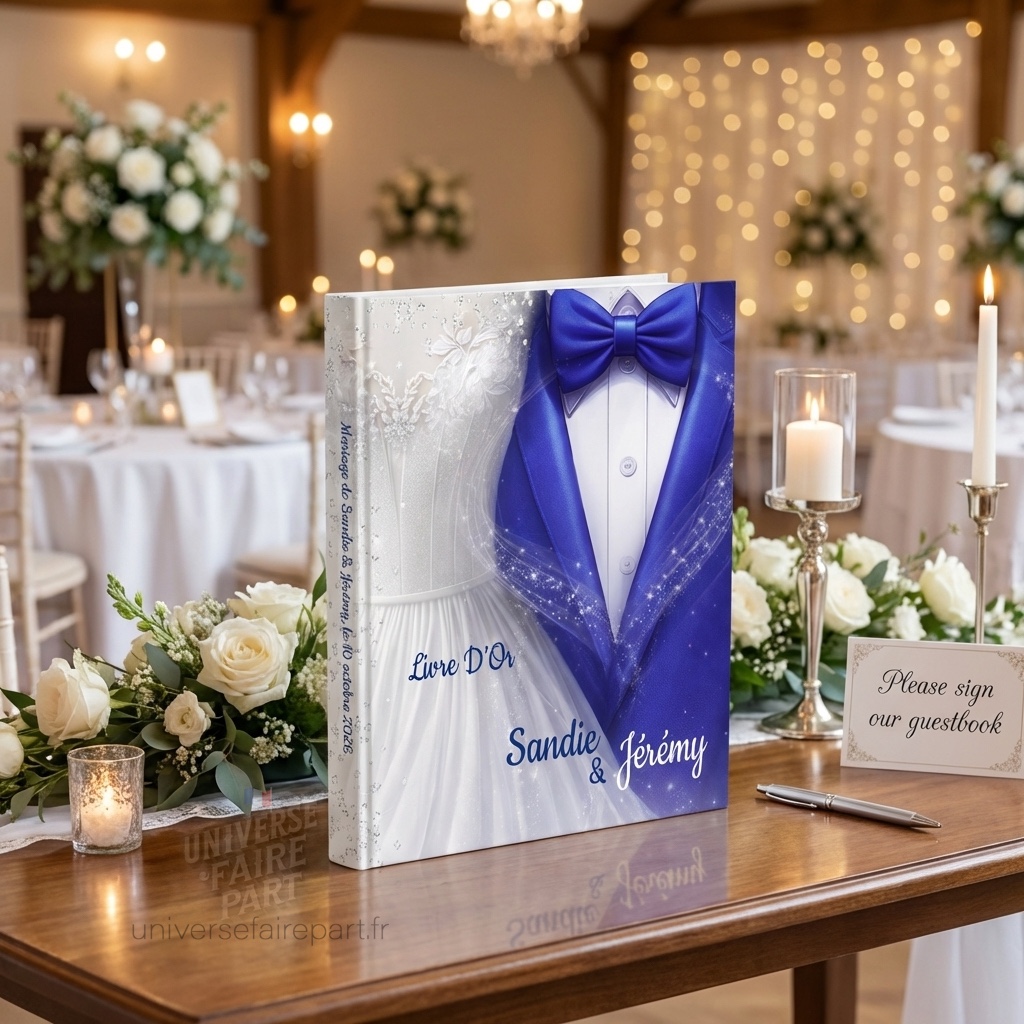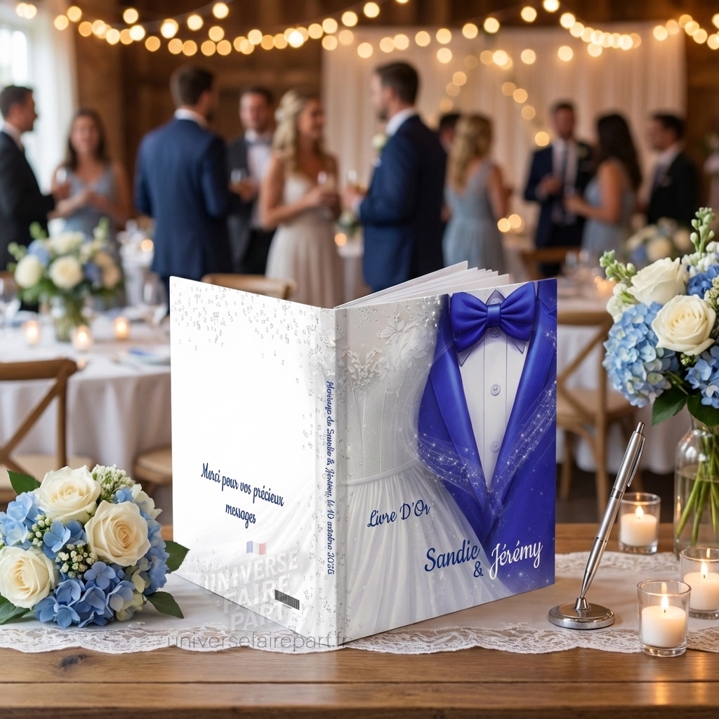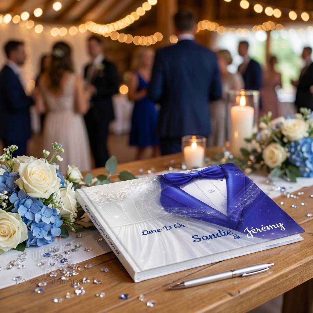 livre d’or mariage, livre d’or personnalisé, livre d’or mariage élégant, livre d’or bleu roi, livre d’or mariés costume robe, livre d’or prénoms personnalisés, cadeau mariage original, livre d’or chic et moderne, souvenir mariage, livre d’or couverture rigide, livre d’or message invité, livre d’or étoilé, livre d’or thème princesse, papeterie mariage personnalisée, livre d’or couple, livre d’or cérémonie, livre d’or style féerique, livre d’or pour mariage à thème, décoration table mariage, accessoire mariage luxe Livre d’Or de Mariage costume 219 Éclats d’Amour