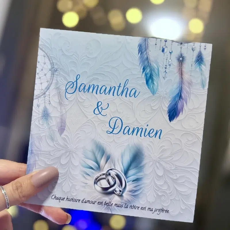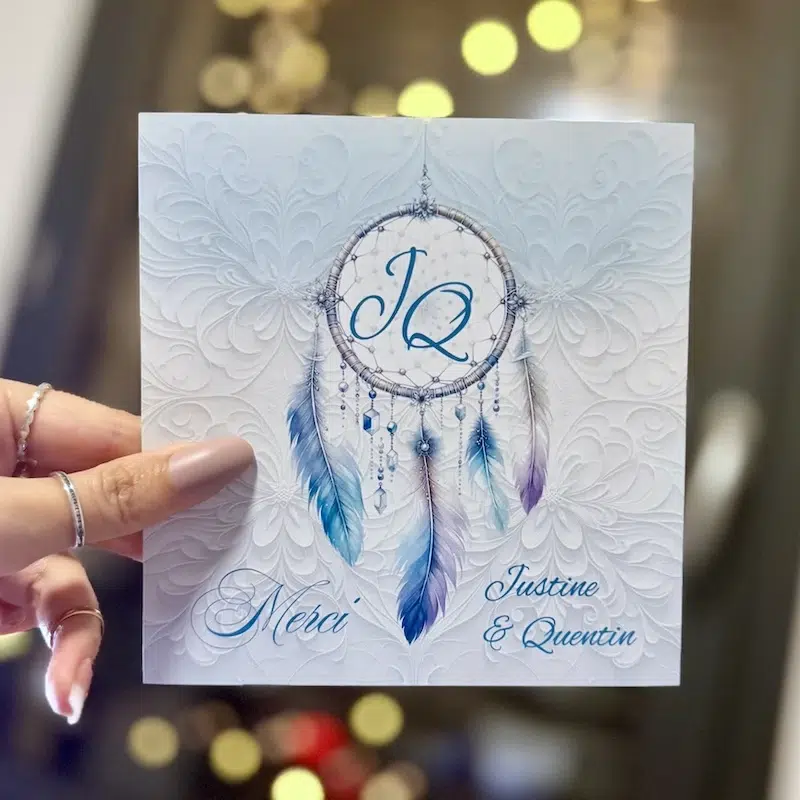 Invitez vos convives à partager le bonheur de votre union autour d’un repas festif avec notre Carton Repas Mariage, conçu pour compléter avec finesse votre faire-part. Cette élégante invitation dépeint une harmonie visuelle de motifs délicats et d’ornements inspirés, évoquant la douceur et la joie de l’occasion.