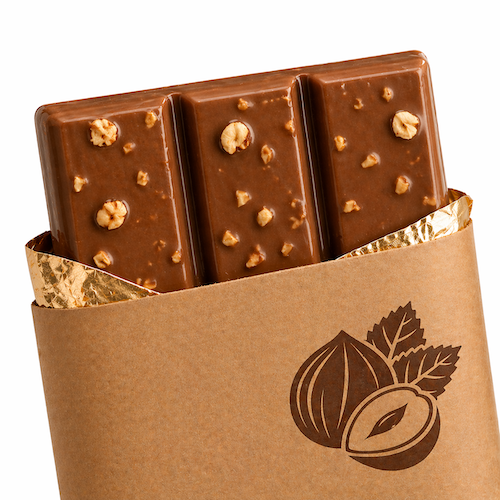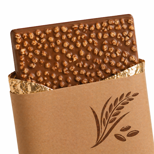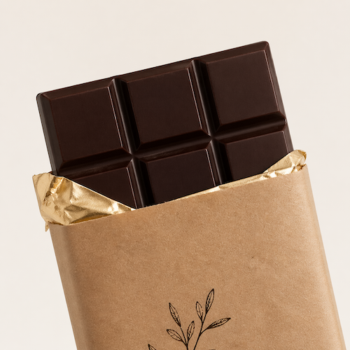 La carte représente une tablette de chocolat finement décorée, avec un cœur rouge au centre pour symboliser la passion et l’amour pour les douceurs. Les détails délicats et les nuances chocolatées créent une ambiance appétissante et invitante.