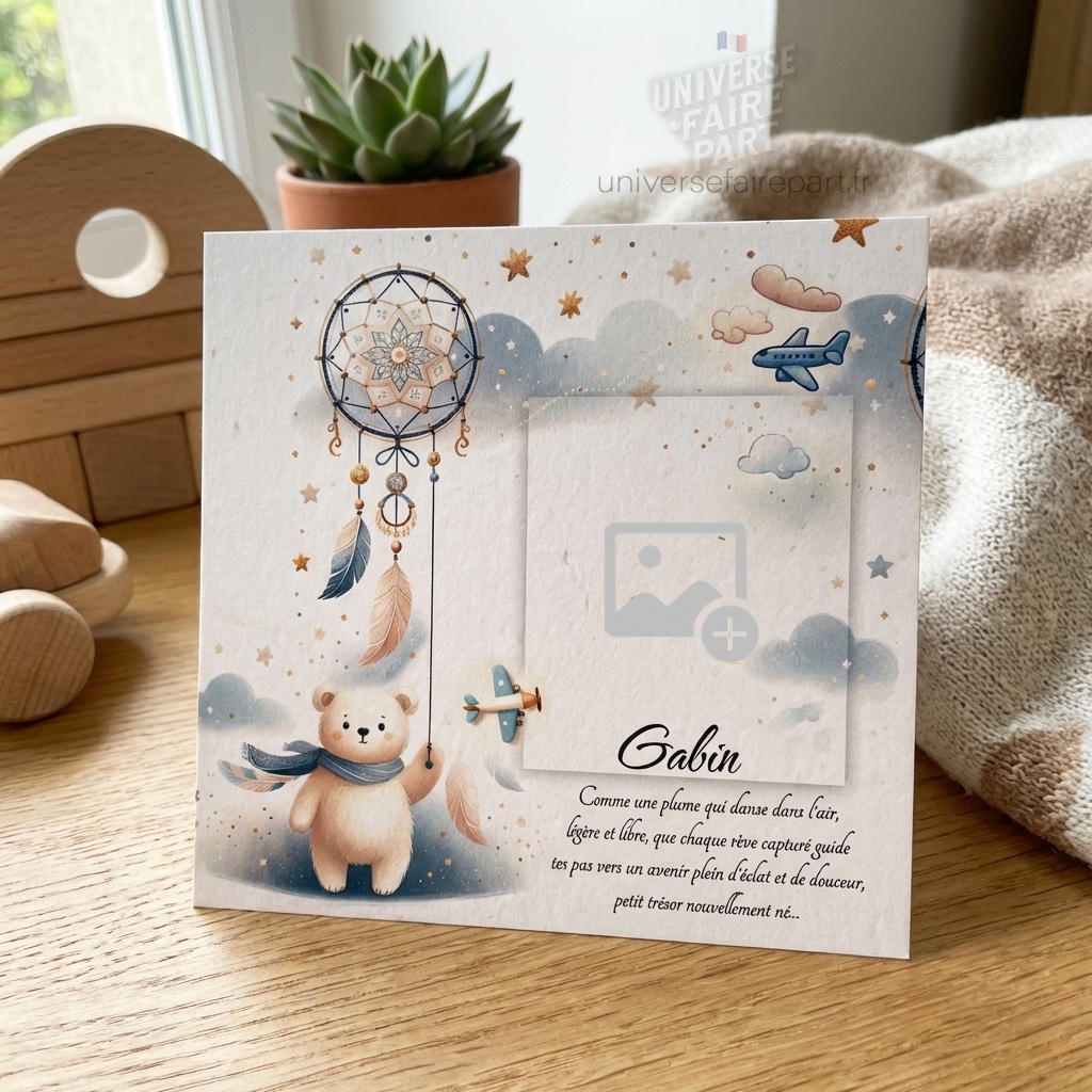 - Design Enchanté : Chaque carte est ornée de motifs délicats tels que des oursons rêveurs, des avions jouets et des dreamcatchers étoilés, enveloppant le destinataire dans un rêve éveillé.