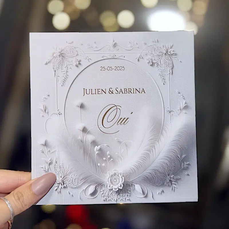 - Détails Délicats: Chaque plume est une note de la mélodie de votre amour, invitant les destinataires à se joindre à la célébration de votre union.