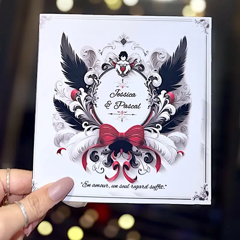 - Personnalisation Poétique: Des mots choisis avec soin qui attendent de raconter votre récit, chaque invitation est un prélude personnalisé à votre grand jour.