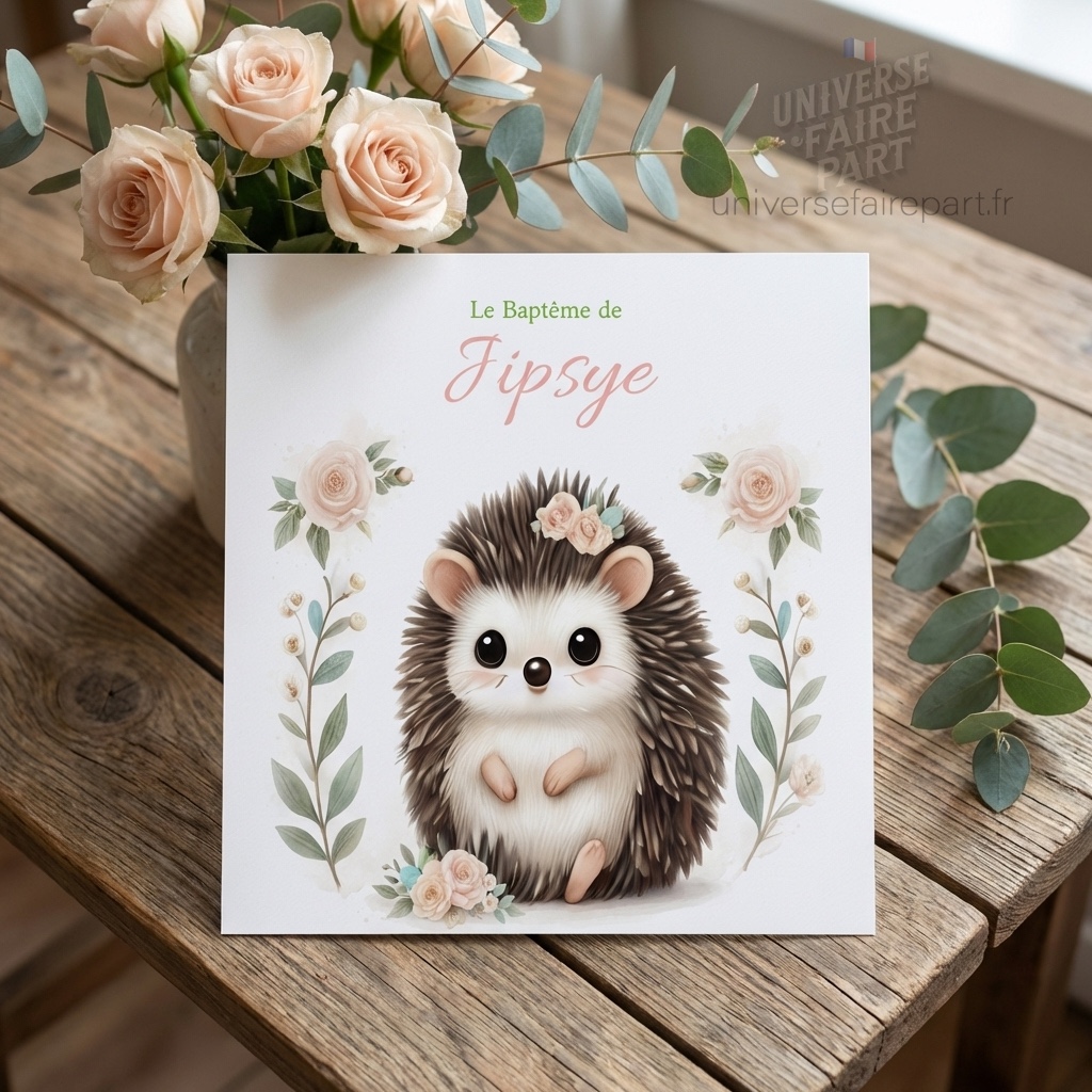 N°561 – Faire-part Fillette Baptême Petite Hérissonne d’Amour