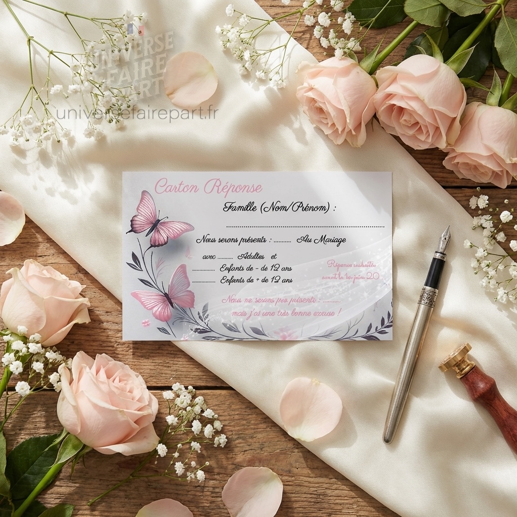 N°266 – Faire-part ‘Vol de Bonheur Papillons Roses’