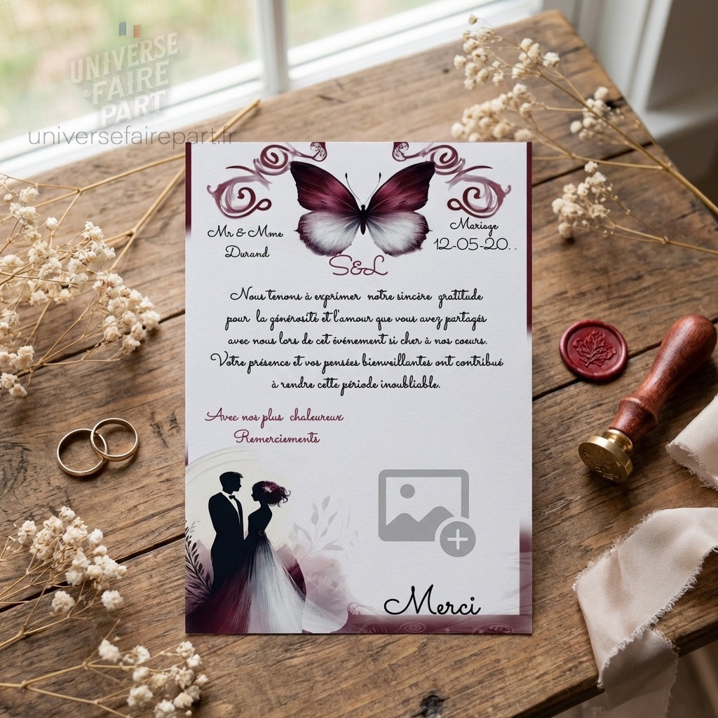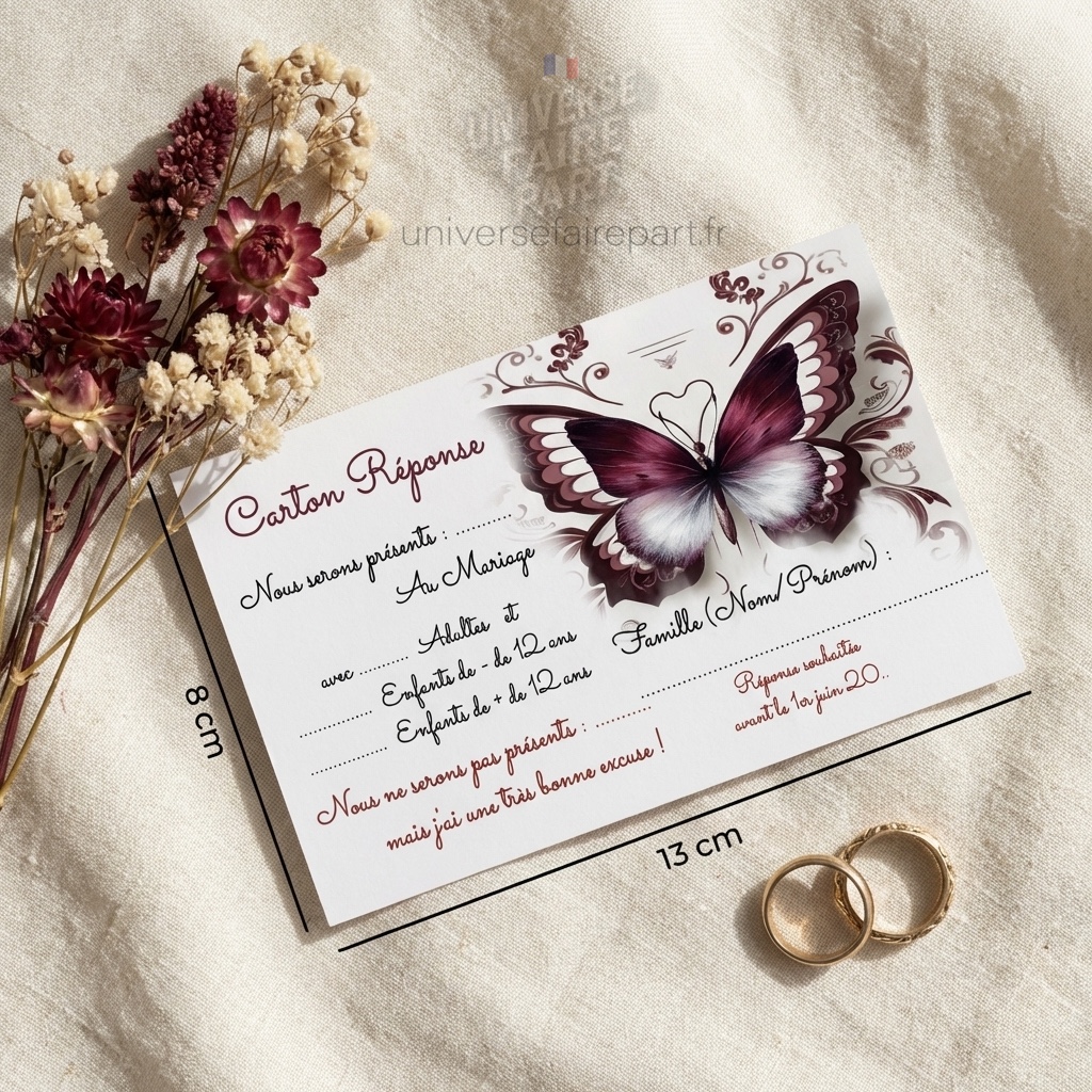 N°267- Faire-part Papillons Union Éternelle Bordeaux