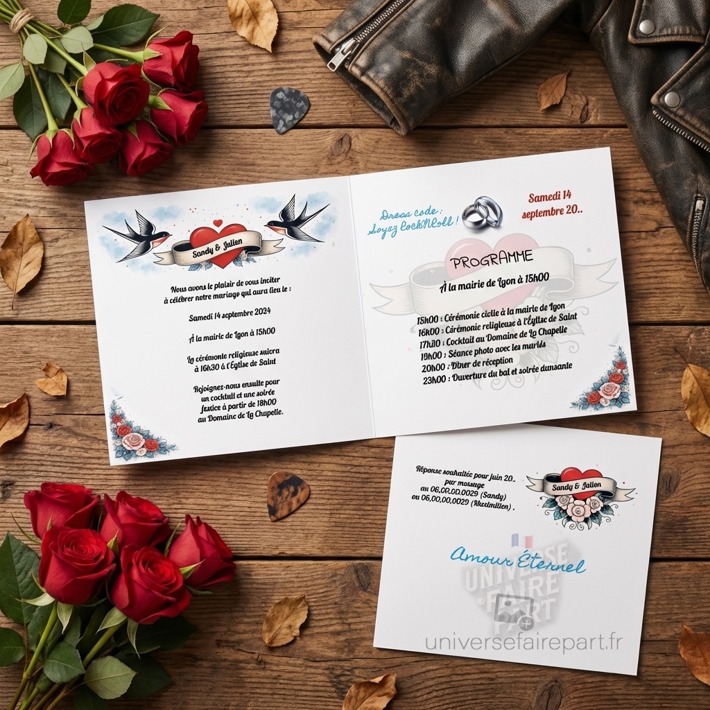 - Design assorti : Parfaitement coordonné avec notre faire-part Rockabilly rétro pour une harmonie visuelle et thématique.