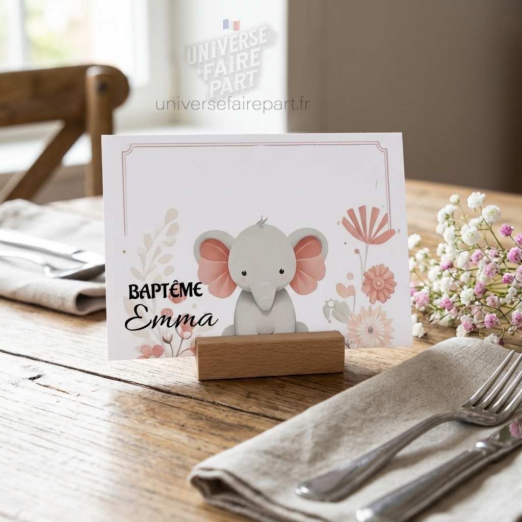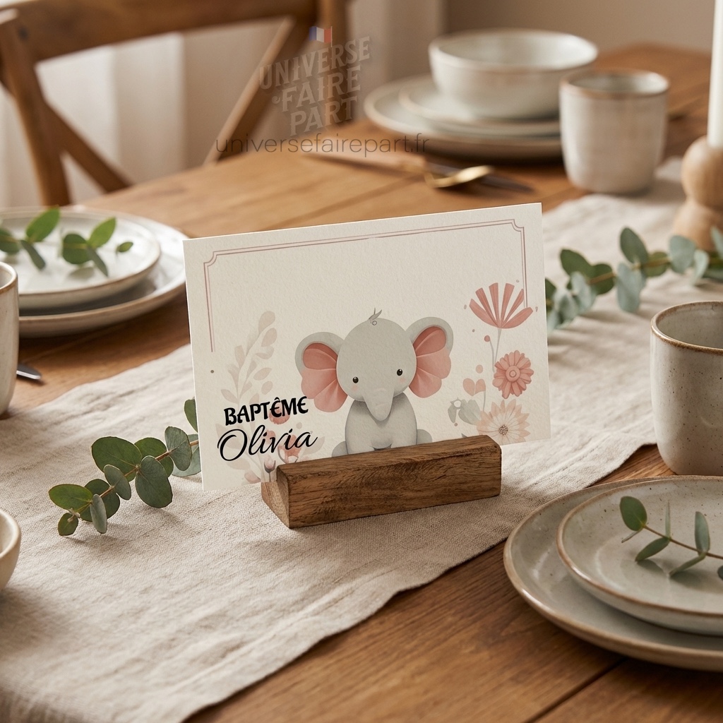Commandez dès maintenant et laissez notre porte-nom Petit Éléphant Adorable ajouter une touche magique et mémorable à votre événement.