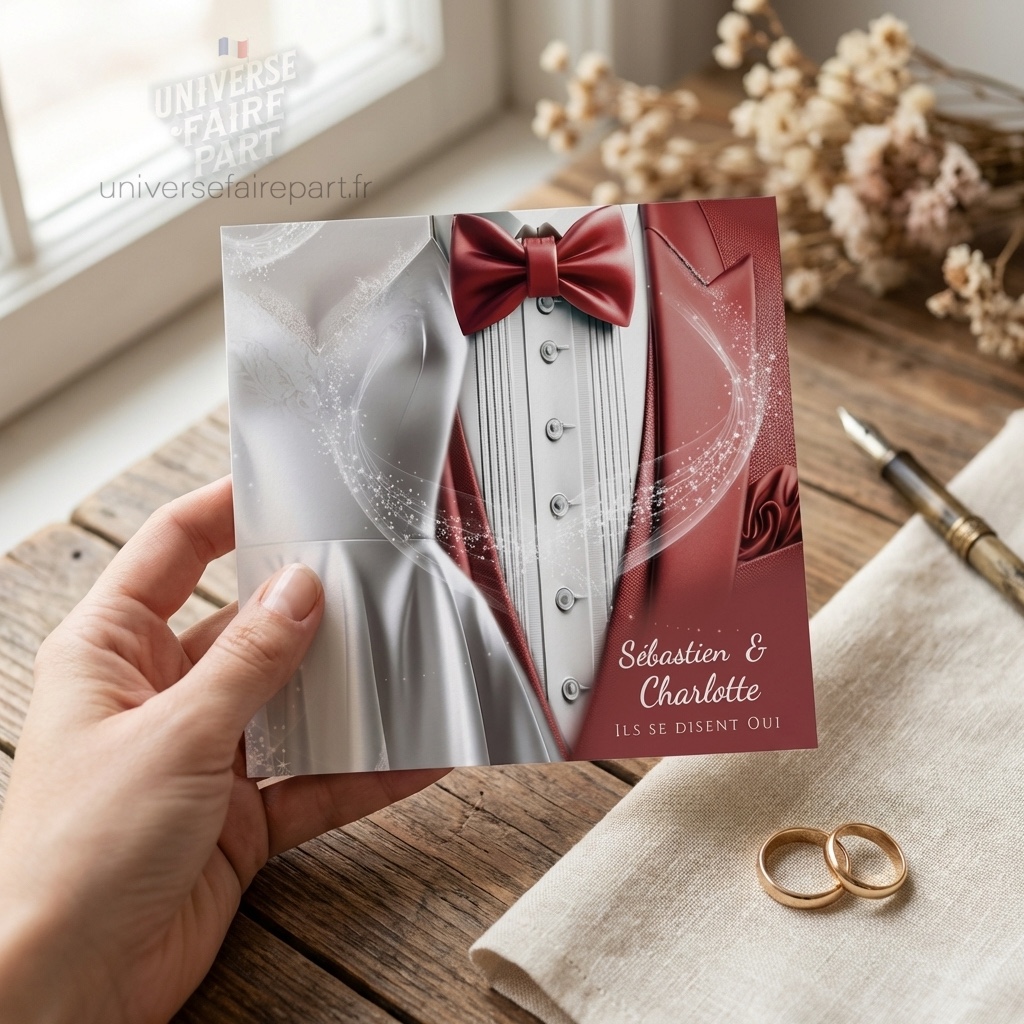 Optez pour le « Rond Collant Élégance Classique – Costume Rouge Bordeaux » pour garantir que chaque détail de votre mariage soit empreint d’une élégance intemporelle, reflétant votre attention aux détails et votre engagement à créer une ambiance sophistiquée et accueillante pour vos invités.