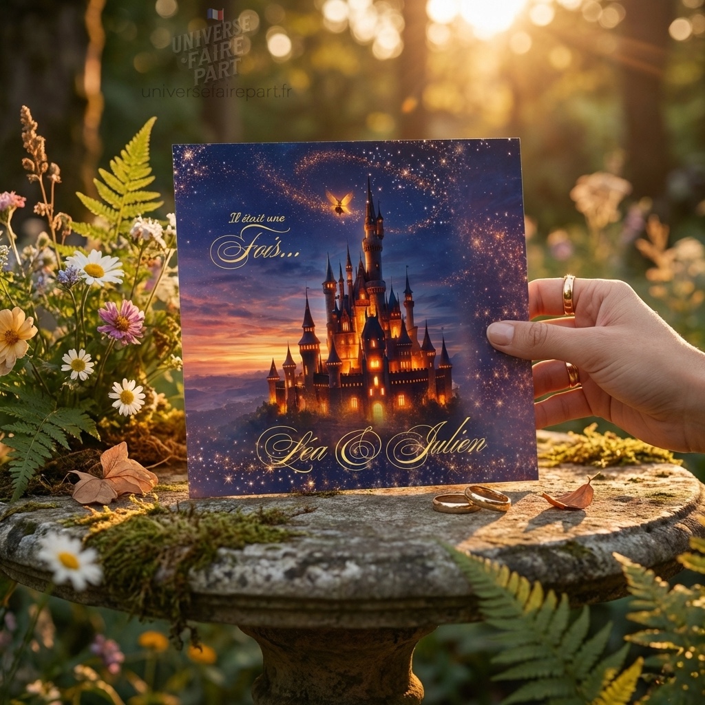 N°25 – PREMIUM Faire-part mariage Château Belle et la Bête Histoire éternelle